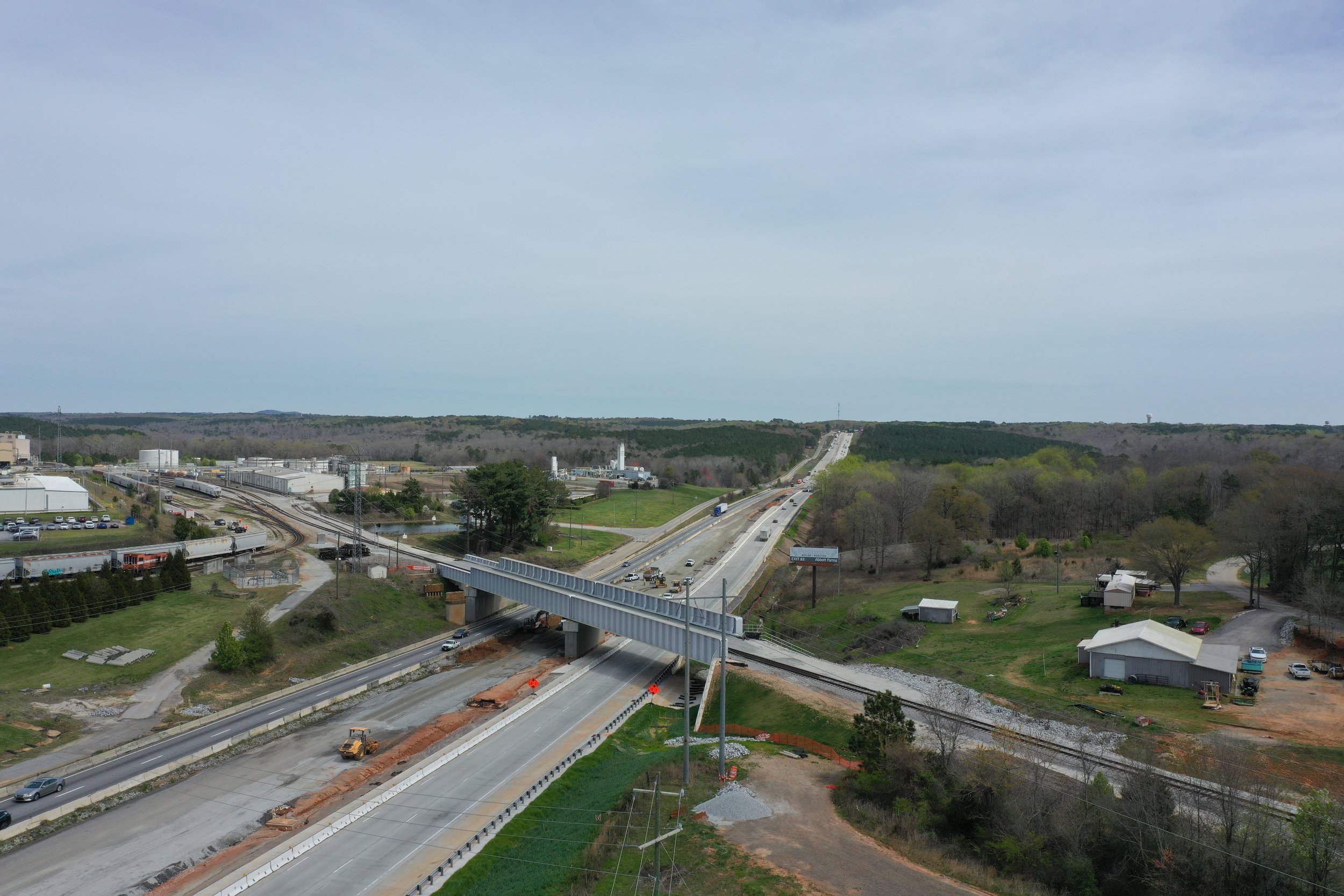 The I-85 Rehabilitation (MM77 to MM84) project replaces the CSX railroad overpass over I-85 and rehabilitates three miles of the interstate. The project schedule was accelerated to be included in the I-85 Phase I and II Design Build Project. The replacement bridge is designed to provide horizontal and vertical clearance for (future) eight lanes of I-85, maintain two lanes of I-85 in each direction during construction, and maintain vehicular and rail access to third party stakeholders.
